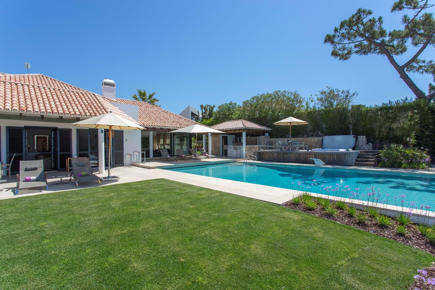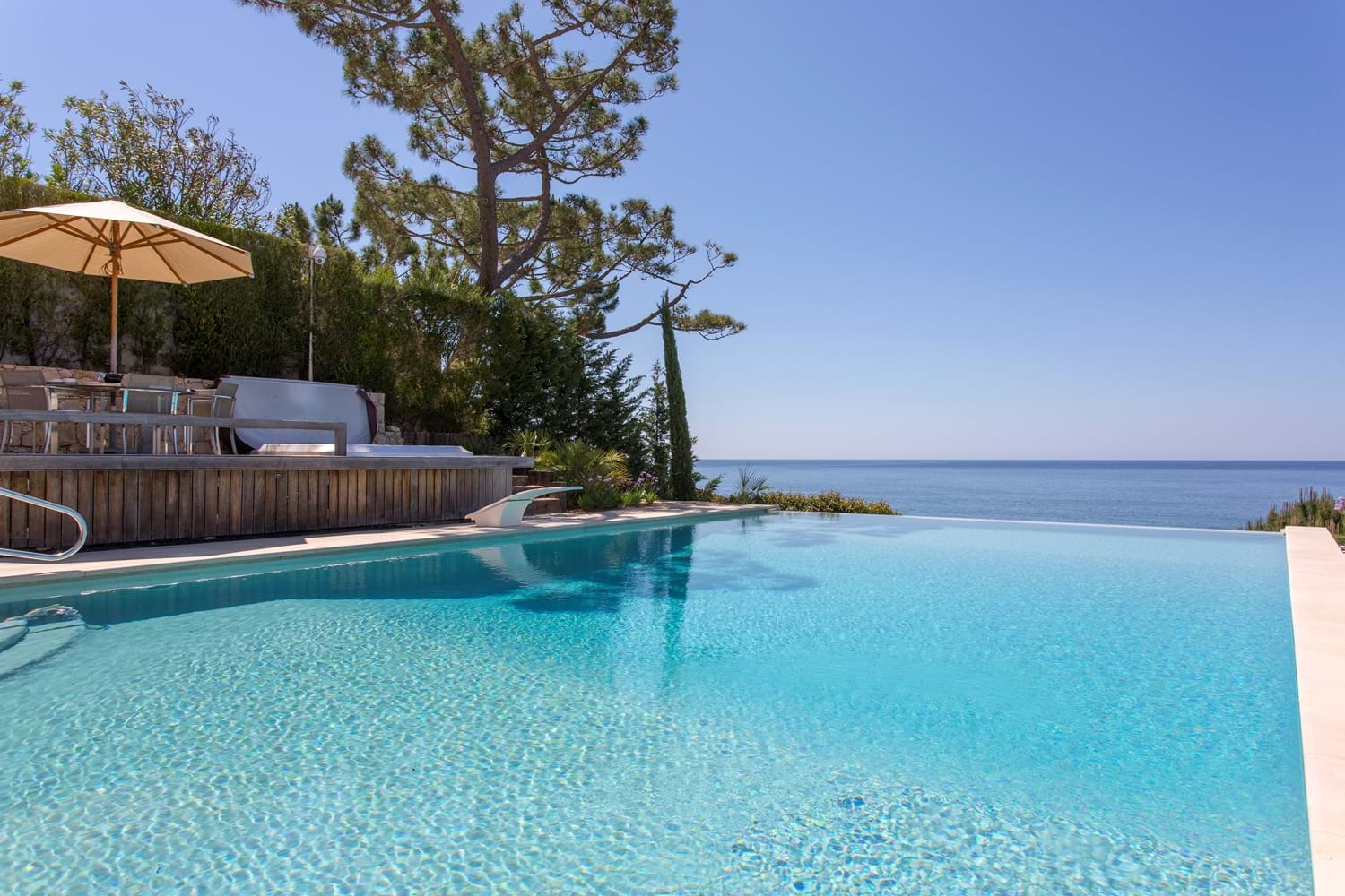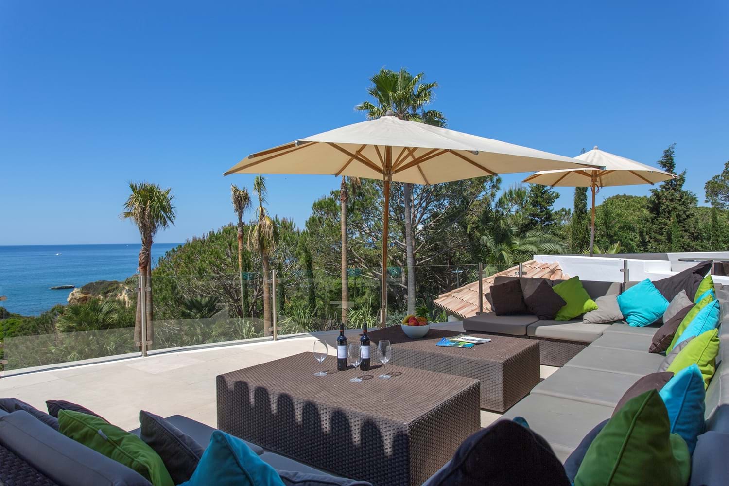 An unrivalled range of fine facilities includes a gym, an infinity pool surrounded by furnished sun terraces, and a poolside Jacuzzi and bar overlooking the sea. The sitting room is spacious, cool and contemporary, and each of the five bedrooms has a bathroom or shower room en suite. Cook service is included here for breakfast and lunch and for four-seasons comfort, the Villa has central heating, pool heating and a games room looking out to sea. Deservedly popular, the villa is within walking distance of two beach restaurants and 1 km to the well known Villa Joya michelin star restaurant as well as shops, restaurants, and sports on land and sea.